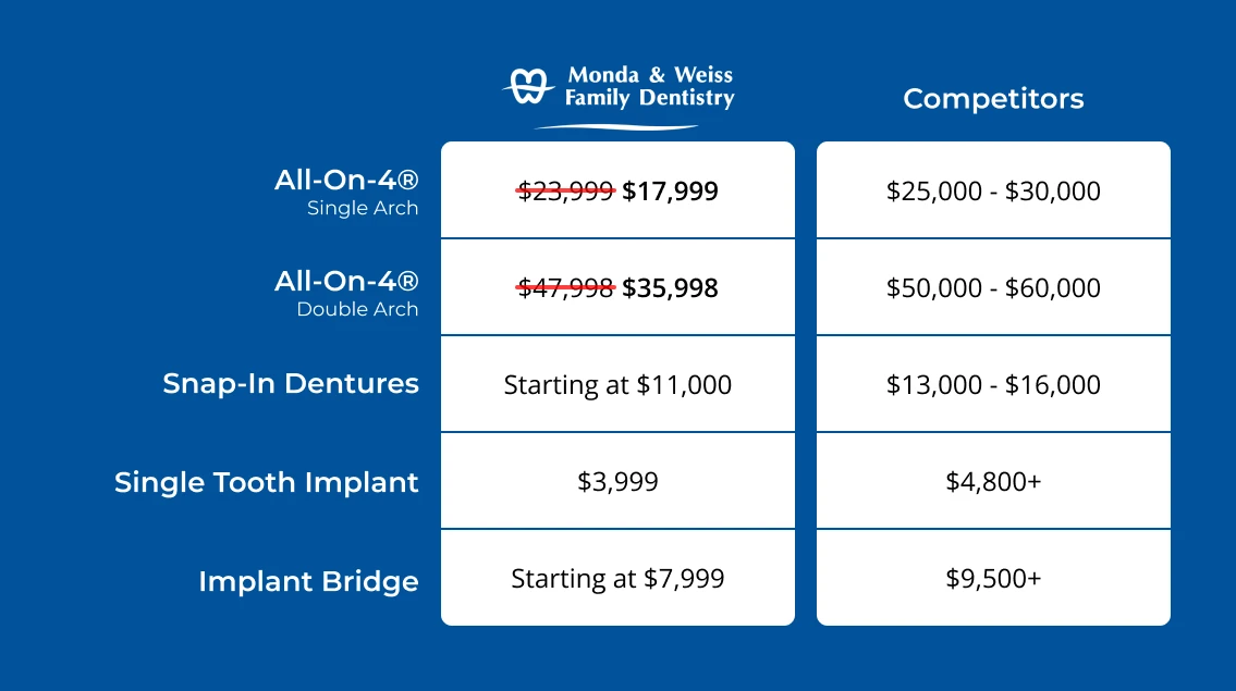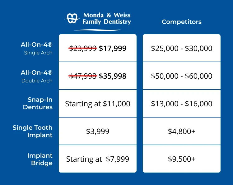 Give us a call to see how much you could save on your dental implant treatment at Monda & Weiss Family Dentistry!